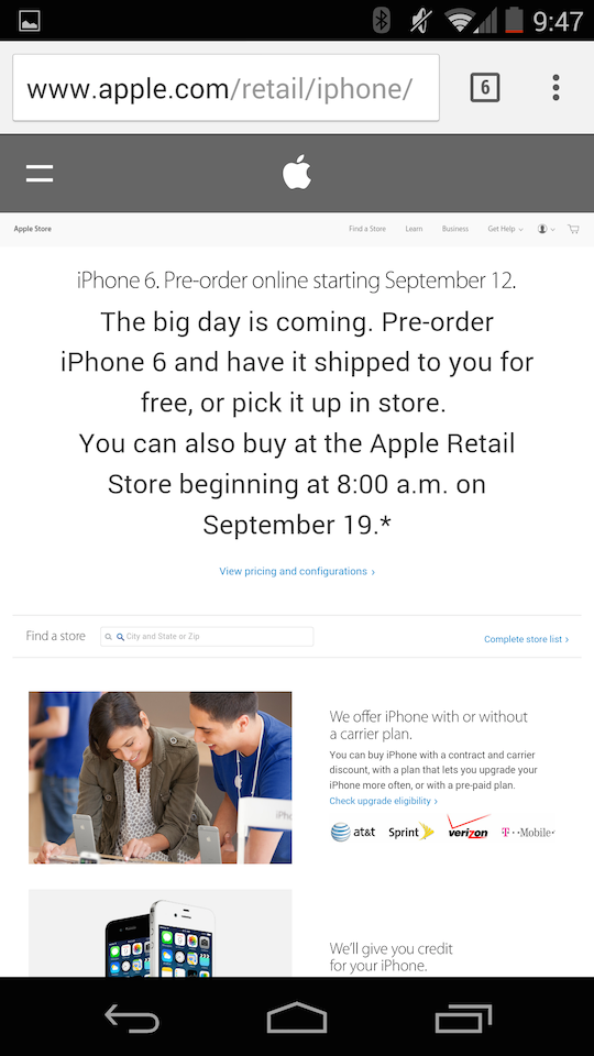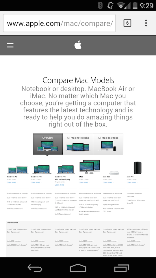 Not that Apple hasn’t made enough news this week, but this is far too disappointing to let go. Yesterday, along with the watch and the iPhone 6 announcment, Apple has made their website responsive (part of it anyway). What appears now is a totally broken design for many of their pages. Not small pages either. Clearly they thought about the product pages for the iPhone and the watch and just said “eh, that seems good”.